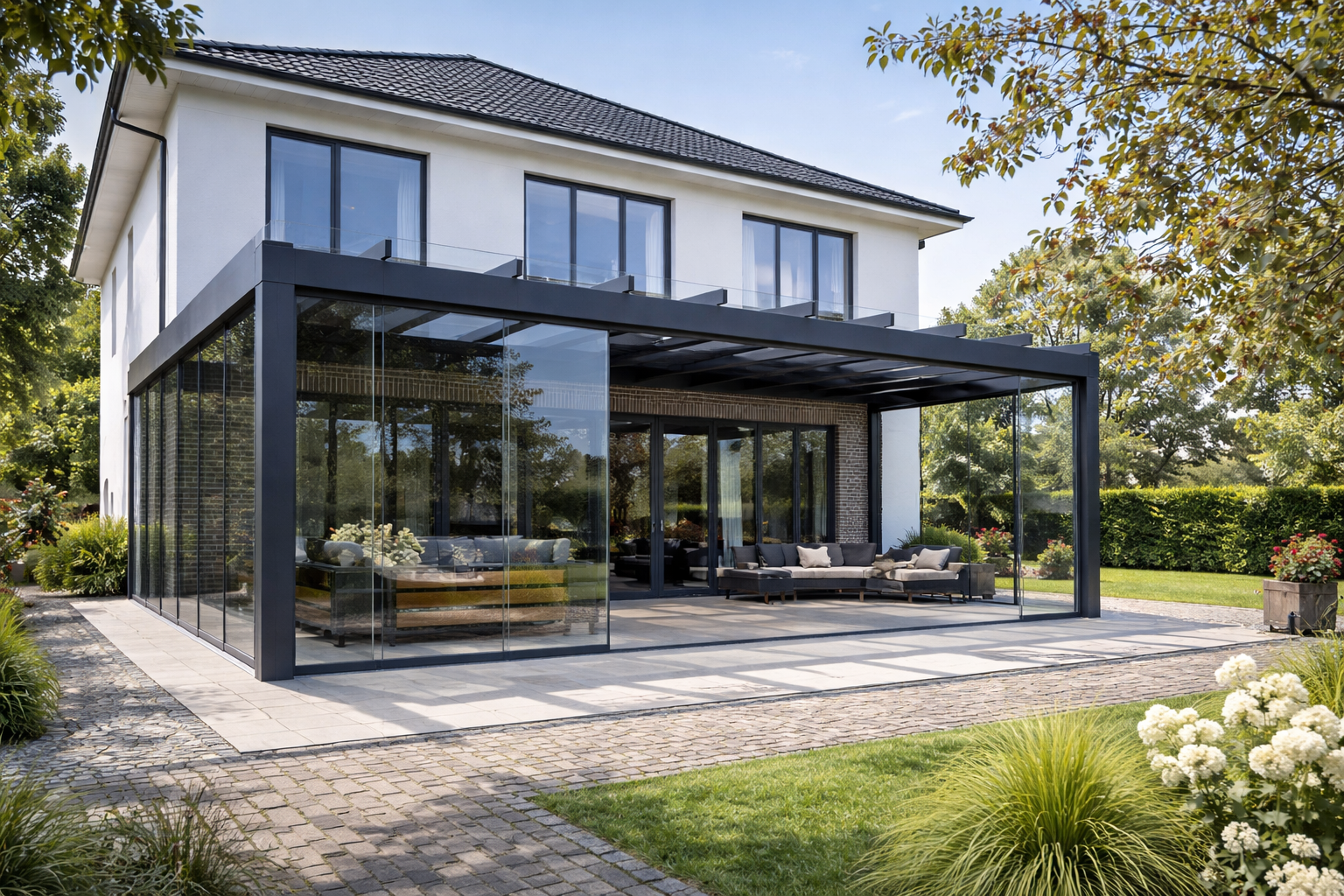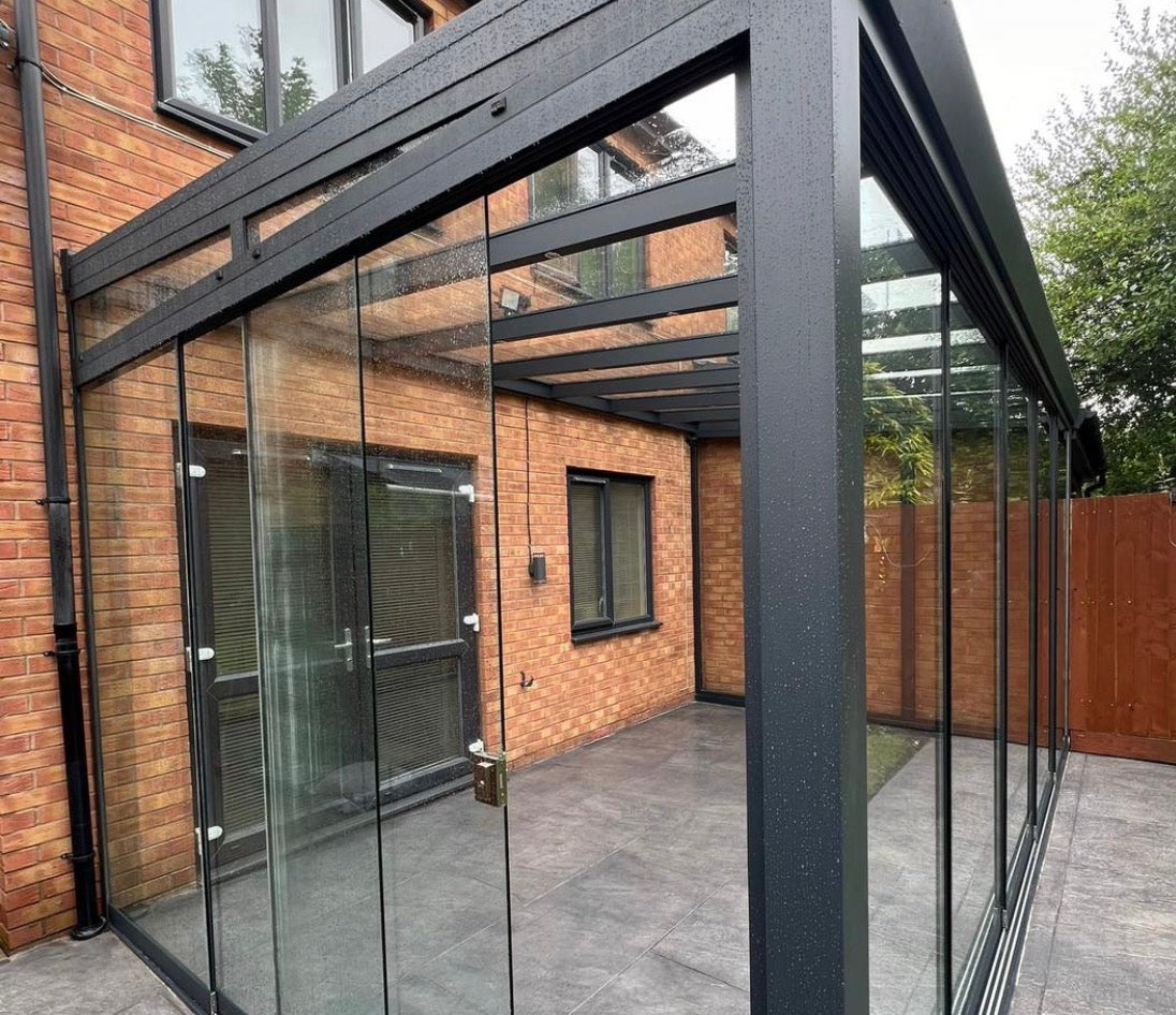 We handle the full process from initial consultation through to installation, including site survey, accurate measurements, delivery and secure fitting. Our glass room verandas are designed for year-round outdoor living and can be upgraded later with sliding glass doors and side panels to create a fully enclosed outdoor glass room.